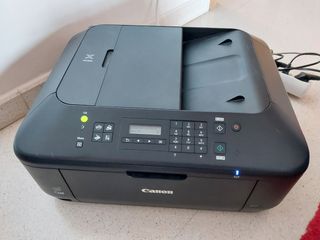 Multifunciones Canon MX455: Escaner, impresora y fax. Utiliza 2 cartuchos (540-541/Negro-Color). Conectores: 📠 Pendrive USB (para guardar los documentos escaneados) 🌐 RJ45 (internet) (*no incluido) 🛜 y WIFI (*app móvil para imprimir). *Cable de alimentación (red eléctrica) incluido. El escaner va sin problemas, la impresora a veces se atasca (*habría que repararla). Similar nueva, en El Corte Inglés, por 69€.