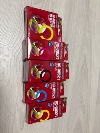 Cartuchos de tinta compatibles nuevos, sin abrir, en su caja original. Modelos RC-00521 y RB-00515H, compatibles con impresoras Canon. Colores incluidos: • 2 x Amarillo • 1 x Cian • 1 x Magenta • 2 x Negro Con chip. Perfectos como alternativa económica a los cartuchos originales. Los vendo porque ya no tengo la impresora. PRECIO: 8€ el pack. Si los quieres por separado, dímelo. iP4200, iP4300, iP4500, iP5200, iP5200R, iP5300. MP500, MP510, MP520, MP530, MP600, MP610, MP800, MP810, MP830, MP950, MP960, MP970. MX700, MX850. Pro9000 (y Pro9000 Mark II)