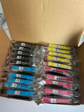 Cartuchos tinta impresora 571 en color cyan (4 unidades.) magenta (4 u.) amarillo (4 u.) negro (3 u. + 4 u. Mod. 570). Para impresoras Canon y HP. Se vende todo el lote completo 19 unidades.