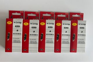 Cinco cartuchos de tinta negra Canon AC-551BK XL de alta capacidad. Están nuevos en sus cajas originales. - Para usar con impresoras PIXMA IP7250, MG5450 y MG6350.