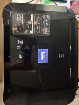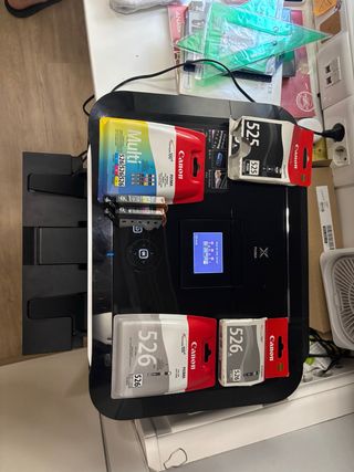 Pack de impresora Canon con varios cartuchos de tinta. Funciona perfectamente Tiene rayada la parte superior por haber tenido cosas encima pero no afecta al funcionamiento