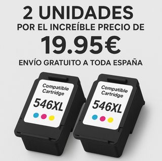 Dos cartuchos de tinta para impresora Canon - Cartucho Color CC-CL546XL. - Cartucho Negro CC-PG545XL. Capacidad XL Se venden juntos, cada uno 9€. En tienda el precio de cada cartucho ronda los 20€.