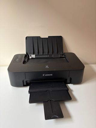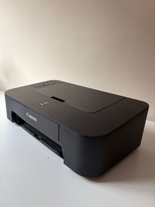 Impresora Canon compacta, color negro. Súper fácil de usar y con el tamaño perfecto para colocarla en cualquier lado sin que moleste. A penas la he usado, la vendo porque mi pareja me puede imprimir las cosas en el trabajo y no quiero que se eche a perder. -Impresión de fotos intensas sin bordes (4x6") y documentos de alta calidad. -Conectividad USB y sensor de papel. -Ahorro energético y de tinta con cartuchos FINE, (no incluidos).