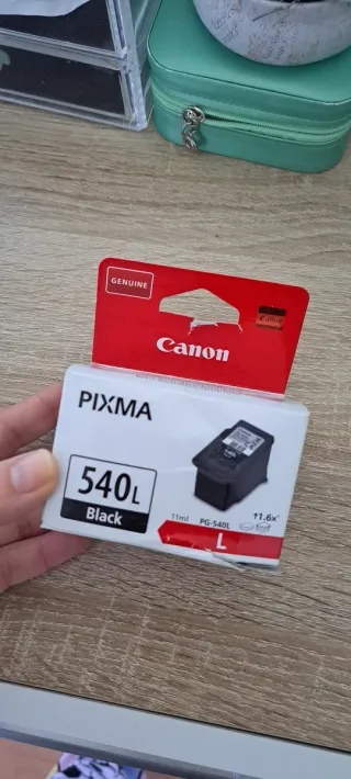 Cartucho de tinta negra para impresoras Canon PIXMA. - Modelo: 540L - Color: Negro - Capacidad: 11ml - Rendimiento: PG-540L Comprada para usarla en la impresora, pero no se abrió finalmente porque se estropeó definitivamente.