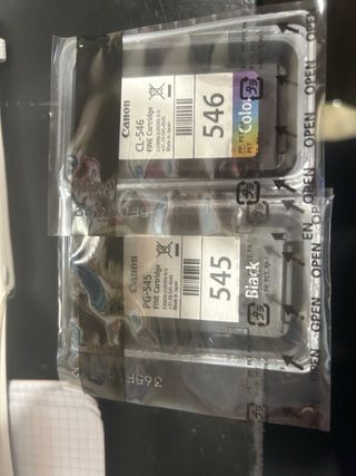 Se venden dos cartuchos de tinta para impresora. - Cartucho PG-545 (negro). - Cartucho CL-546 (color). - Fabricados en Japón.