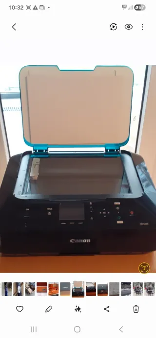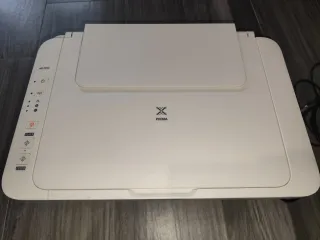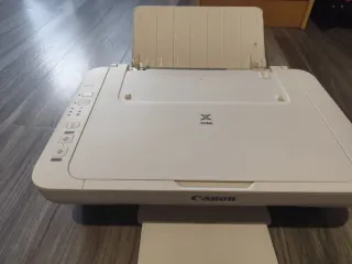 Impresora Canon Pixma MG2950 multifuncion en color blanco. Funcionando hasta último momento,vendo por haber comprado una de depósitos. Esta sin tinta, como se ve en las fotos entrego otros cartuchos gastados para poder rellenarlos con jeringuilla si se desea y sabes como hacerlo. Entrego con cable de alimentación y conexion USB a ordenador.