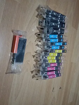 Lote de cartuchos de tinta para impresora. - Cartuchos de tinta compatibles. - Colores variados (negro, cian, magenta, amarillo). - Certificación CE. Impresoras canon ,compatibles en las fotos