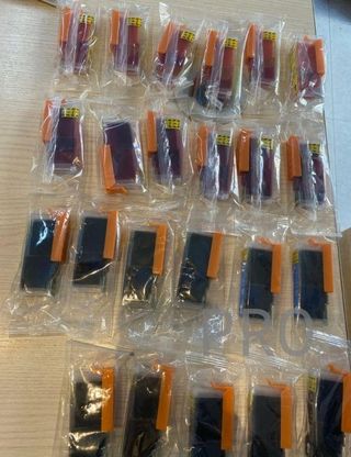 Cartuchos tinta impresora 571 en color cyan (4 unidades.) magenta (4 u.) amarillo (4 u.) negro (3 u. + 4 u. Mod. 570). Para impresoras Canon y HP. Se vende todo el lote completo 19 unidades.