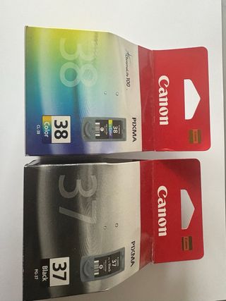 Se venden dos cartuchos de tinta originales Canon. - Cartucho Canon CL-38 Color. - Cartucho Canon PG-37 Black.