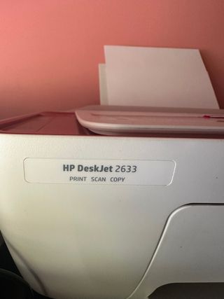 Impresora multifunción HP DeskJet 2633. - Imprime, escanea y copia. - Color blanco y rojo No tiene cartuchos de tintas. El programa de instalacion se descarga en la pagina de HP