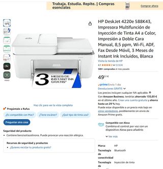 HP DeskJet 2720e - Impresora Multifunción, 6 meses