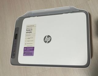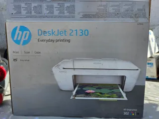 Impresora escáner HP DeskJet 2723e en muy buen estado, funciona perfectamente. Le queda tinta en los cartuchos. Color gris muy claro, casi blanco. Con sus cables 43x30x15cm