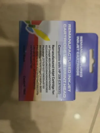 Cartucho de tinta remanufacturado para impresoras HP. - Modelo: HP 338 (C8765EE) - Color: Negro - Contenido: 18ml - Compatible con varios modelos HP Deskjet, Photosmart, PSC y Officejet.