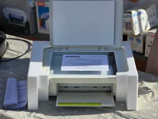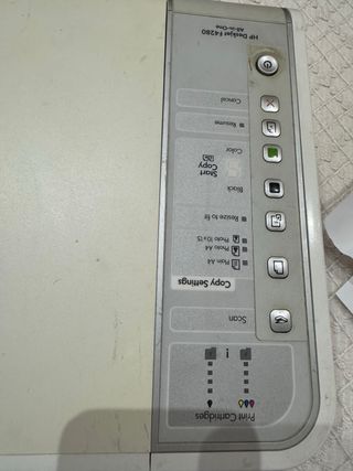 Impresora HP en buen estado, con sus cables e instrucciones. Funciona correctamente. - Imprime, copia y escanea. - Diseño compacto y elegante. - Fácil de usar. - Viene con cartuchos pero estan gastados.