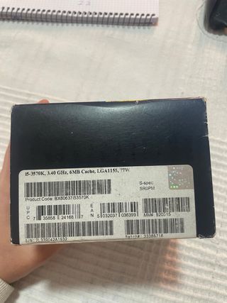 Procesador Intel Core i5-3570K. - Velocidad de 3.40 GHz. - Caché de 6MB. - Socket LGA1155. - TDP de 77W. - S-spec: SR0PM. - Código de producto: BX80637153570K. - Número de serie: 2L339042A1532. - Lote: 33388716.