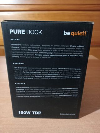 Disipador para CPU be quiet! Pure Rock con una capacidad de 150W TDP. Diseñado para una refrigeración silenciosa y eficaz. - Ventilador be quiet! de 120mm (máx. 26.8dB(A)). - Cubierta superior de aluminio.