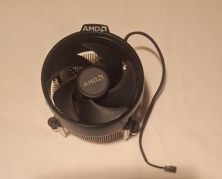 3 años de uso moderado. Hélices y cable en buen estado, sin golpes ni deformaciones. No ha sido limpiado: se entrega tal cual, con algo de polvo superficial. Pegatina AMD intacta. Socket AM4. Ventilador PWM 4 pines. Altura aproximada: 7 cm. Incluye sus tornillos/enganche originales (no incluye backplate de placa base, se usa el del propio motherboard AM4).