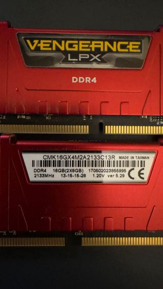 Módulos de memoria RAM Corsair Vengeance LPX en color rojo. - Capacidad total de 16GB. - Tecnología DDR4. - Modelo Vengeance LPX. - 2133 Mhz - Srgunda foto con todos los datos de latencia etc Yo, si un precio no me gusta, no molesto y espero lo mismo