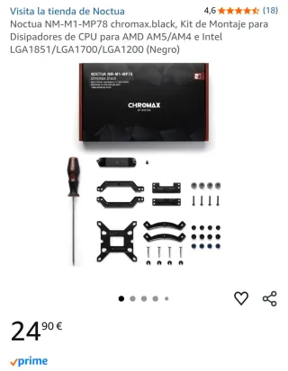 PVP:25€ Kit de actualización premium SecuFirm2+ de Noctua, ideal para instalar tus disipadores compatibles en las plataformas más modernas. Compatibilidad Total: AMD: AM5 y AM4. Intel: LGA1851, LGA1700, LGA1200, LGA115x. Características Destacadas: Versión chromax.black (totalmente negra) para una estética elegante. Incluye destornillador Torx T20 magnético para una instalación sencilla y duradera. Opción de montaje desplazado para AM5, que mejora la temperatura de la CPU. Compatible con disipadores Noctua con distancia de montaje de 78 mm. Dispongo de 2 unidades. Precio por las 2: 40€