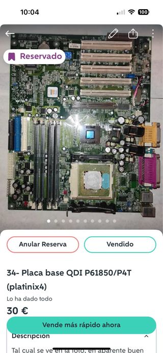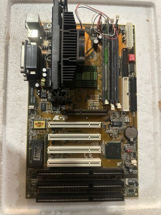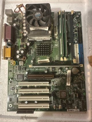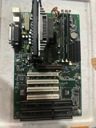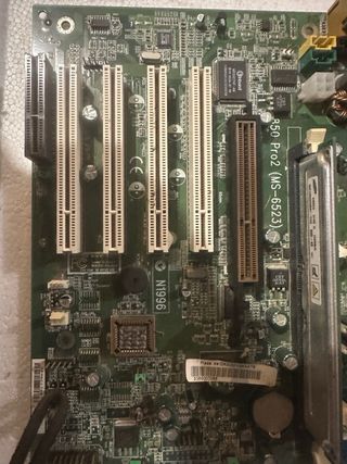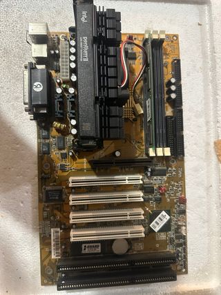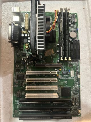 Lote de componentes informáticos vintage Años 90 - Placa base con procesador. - Disco duro. - Tarjeta de expansión. - Tarjeta gráfica. Vendo por wallapop sin garantía sin devoluciónes