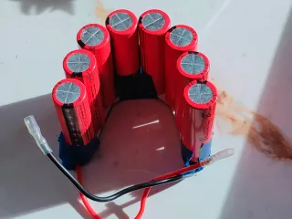 Pack de 8 baterías de litio recargables, unidas en serie para formar un paquete. Cada batería es de 3,2v y dimensiones de 6,5 cm de alto y 2 cm de diámetro. Sacadas de una famosa marca de aspiradoras portátiles por avería de motor, las baterías están totalmente funcionales. Ideal para proyectos de hobby en electrónica, para alimentar aparatos eléctricos, etc. Se atiende cualquier consulta. - Baterías cilíndricas de color rojo.