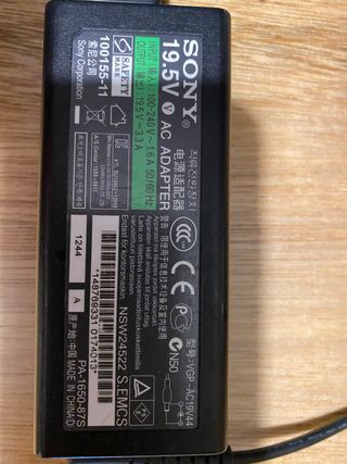 Cargador original para portátil Sony Vaio 19’5v. (Ver más características en foto)