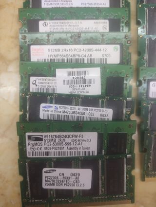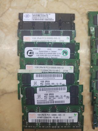 para portátiles, 3 unidades de 1GB y 6 unidades de 2GB disponibles módulo de 1GB a 6€ unidad módulo de 2GB a 12€ unidad