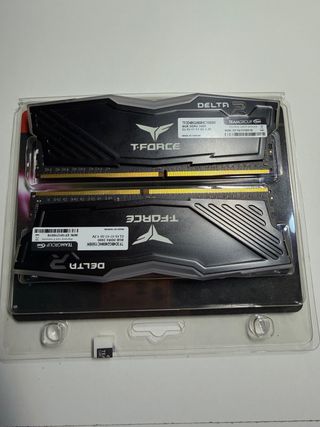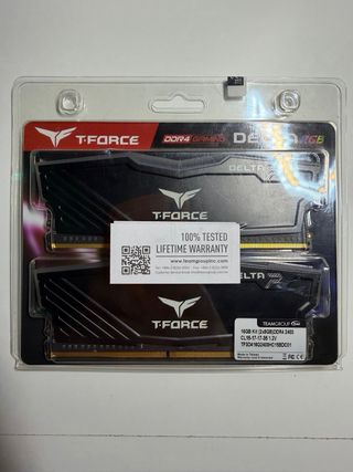Pack de dos módulos de memoria RAM DDR4 de TeamGroup. Prácticamente Nuevo, se vende por falta de uso y tiempo junto a demás componentes de mi perfil, se entrega con su caja original. - Modelo: T-Force Delta. - Capacidad total: 16GB (2x8GB). - Frecuencia: 2400MHz. - Latencia: CL15-17-17-35. - Voltaje: 1.2V.