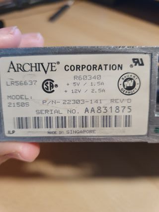 Unidad de cinta de Archive Corporation con capacidad de 150MB. - Modelo: LR56637 - Capacidad: 150MB