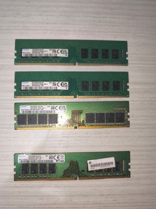 Memorias RAM DDR4 DIMM Equipos de Mesa Velocidades: PC4-21300 (2666MHz) – 35€ unidad PC4-25600 (3200MHz) – 40€ unidad Son todas de 16GB de capacidad, se venden sueltas Probadas y testeadas. Se muestra CPU-Z individual. Todas son SAMSUNG Solo entrega en mano, no me interesan cambios, no se envían.