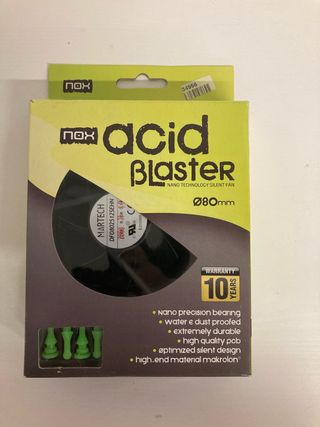 Ventilador de ordenador NOX Acid Blaster de 80mm. Incluye soportes de montaje. - Rodamiento de precisión nano. - Resistente al agua y al polvo. - Diseño silencioso optimizado. - Material de alta gama Makrolon®. - PCB de alta calidad. - Extremadamente duradero.