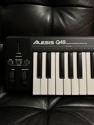 Controlador de teclado USB/MIDI Alesis Q49 de 49 teclas. - 49 teclas sensibles a la velocidad. - Ruedas de pitch y modulación. - Conexión USB y jacks MIDI tradicionales. - Incluye cable USB - En su caja original con protecciones y la guía de inicio Puedo enviar vídeo donde se comprueba que funcionan correctamente todas las teclas.