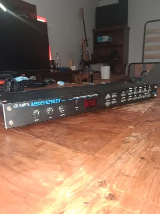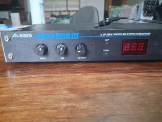 Procesador de efectos Alesis Microverb 4 en rack 19" En perfecto estado. Siempre en mi estudio, no bolos. 200 Presets internos y 100 de usuario con reverberaciones variadas (hall, room, plate), efectos moduladores (chorus, flange, delay), y combinaciones multi-efectos de todo tipo. Conversión A/D/A de 28-bit. 2 Controles rotatorios de edición de efectos y led dual de 4 segmentos con indicador de señal de dos colores. Entradas/Salidas dual en conectores jack TRS de 1/4". No leer: tc electronic delay shure micrófono lexicon cubase efectos