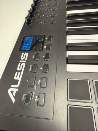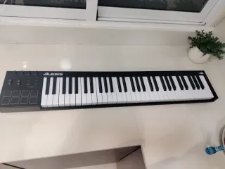 Teclado controlador MIDI USB de la marca Alesis. Ideal para producción musical y actuaciones. - Diseño compacto y portátil. - Teclas sensibles a la velocidad. - Botones y perillas asignables. El teclado se encuentra en perfecto estado y incluye el soporte.