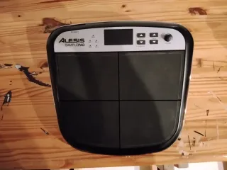 Controlador de pads Alesis SamplePad 4, con sonidos internos y externos (sd). Muy fácil de utilizar. Impoluto, conservo caja y protector de la pantalla lcd. - Añado tarjeta SD. - Cuatro pads sensibles al tacto. - Pantalla LCD. - Botones de navegación y control. No incluye pie, pero lo tengo por si interesa.