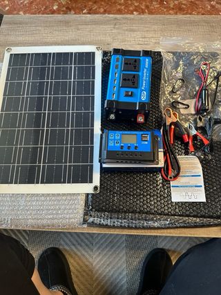Se vende inversor de corriente de 300W junto con un controlador de carga solar. - Inversor de potencia 300W. - Controlador de carga solar. - Puertos USB disponibles.