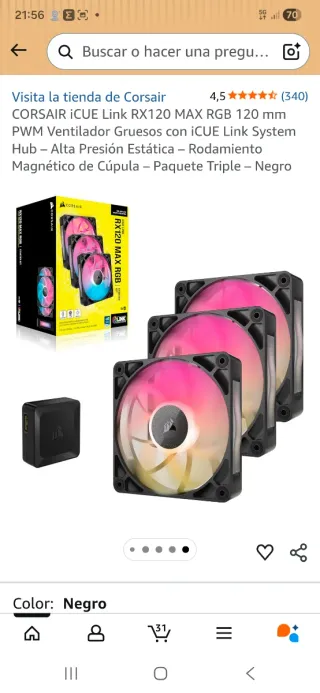 Ventilador CORSAIR iCUE Link RX120 MAX RGB de 120 mm. Incluye un sistema de hub para control. - PWM para control de velocidad. - Alta presión estática. - Rodamiento magnético de cúpula. - Paquete triple. - Color: Negro. Somos tienda de liquidaciones, estan abiertos solo para enseñar en tienda.