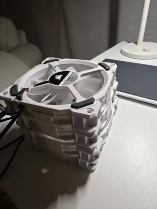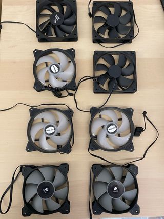 Se venden 8 ventiladores para ordenador. 2 Corsair normales 3pin 2 Corsair SP120 4pin 3 Uphere 3pin con led blanco 1 Yeyian 3pin Incluye un controlador pequeño tambien Usados solo 1 año y funcionan perfectamente. #gaming #pc #corsair #ordenador #fans #ventiladores