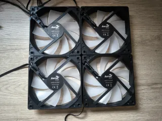 Vendo 4 ventiladores de 120 mm de Aerocool para caja de PC. ✔ Iluminación RGB ✔ Los efectos se cambian con el botón RESET de la caja ✔ Sistema de conexión en cadena entre ventiladores ✔ Alimentación por SATA directa a la fuente ✔ 12V – 0.25A por ventilador ✔ Buen flujo de aire y funcionamiento silencioso. Se pueden conectar los 4 ventiladores entre sí y alimentar todo con un solo cable SATA. La iluminación RGB se controla fácilmente usando el botón Reset del frontal de la caja. Ideales para PC gaming, cajas con ventana o homelab con buena ventilación. Estado: funcionando perfectamente. Se vende el pack de 4 ventiladores.