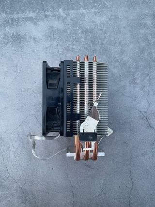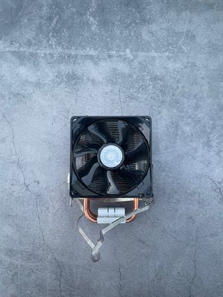 Disipador de calor Cooler Master con ventilador integrado, ideal para mantener el procesador fresco incluso en tareas exigentes. Cuenta con heatpipes de cobre y base de aluminio que garantizan una excelente disipación térmica. Incluye ventilador de 120 mm con conector de 4 pines (PWM) para control automático de velocidad. En buen estado y funcionando correctamente. Características: • Marca: Cooler Master • Material: Cobre y aluminio • Tamaño del ventilador: 120 mm • Tipo de conexión: 4 pines (PWM) • Estado: Buen estado, totalmente funcional