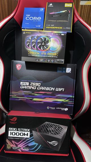 Vendo lote completo de hardware gaming de alto rendimiento, ideal para montar un PC potente para gaming, streaming o edición. Componentes de marca premium, en perfecto estado y bien cuidados. Componentes incluidos: 🔹 Intel Core i7-11700K (11ª Gen, desbloqueado) 🔹 MSI Z590 Gaming Carbon WiFi (placa base gama alta) 🔹 16 GB RAM Corsair Vengeance RGB Pro DDR4 3600 MHz (2×8 GB) 🔹 Fuente ASUS ROG Strix 1000W – 80 Plus Gold 🔹 Pack 3 ventiladores Antec Prizm 120 ARGB con controlador ✔ Excelente rendimiento en juegos actuales ✔ Ideal para futuras ampliaciones ✔ Estética RGB premium ✔ Todo probado y funcionando correctamente