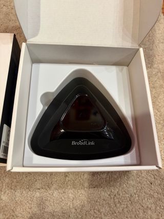 Broadlink RM Pro+ original en muy buen estado. Control remoto universal por Wi-Fi para dispositivos IR y RF (TV, aire acondicionado, persianas, ventiladores, etc.). Control desde el móvil y compatible con Alexa y Google Home. Incluye dispositivo, cable, fuente de alimentación y caja original. Probado y funcionando perfectamente.