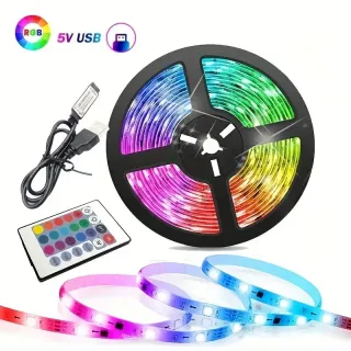 Tira de luces LED RGB de 5 metros con conexión USB y mando a distancia. - Controla los colores y efectos de iluminación. - Alimentación por USB 5V. - Mando a distancia incluido.
