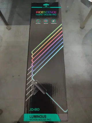 Alfombrilla de ratón con iluminación LED. - Diseño Iridescence Fabric Mouse Pad. - Control de luz: interruptor y ciclo. - Material: tejido. - Modelo: JD-80. - Plegable.