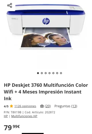 HP Deskjet 3760 Multifunción Color Wifi + 4 Meses
