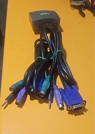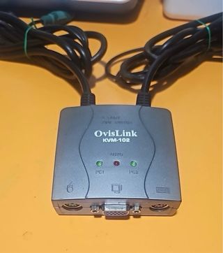 Conmutador KVM OvisLink KVM-102 para controlar dos ordenadores. - Permite conectar y controlar 2 PCs. - Indicadores LED para PC1, PC2 y AUTO. - Puertos para ratón, teclado y monitor.