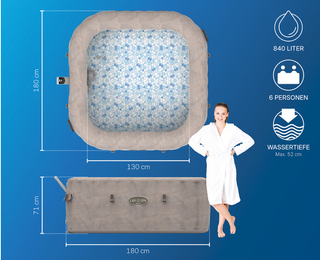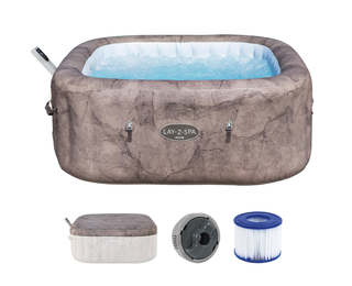 Bañera de hidromasaje de bajo consumo LAY-Z-SPA® Rome AirJet™ con control mediante app, para 6 personas, 180 x 180 x 71 cm, efecto mármol (marrón)