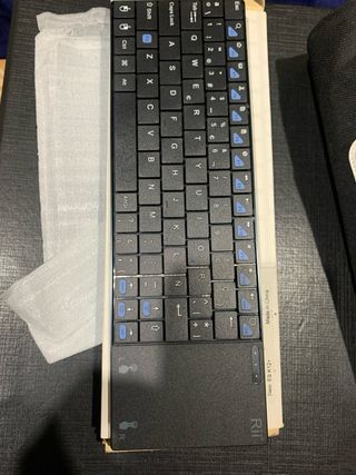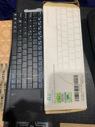 Teclado inalámbrico Rii K12 Mini con touchpad integrado, ideal para múltiples dispositivos. Diseño compacto y ligero. - Teclado QWERTY en español. - Conexión inalámbrica. - Touchpad integrado para control del cursor. - Diseño compacto y portátil.