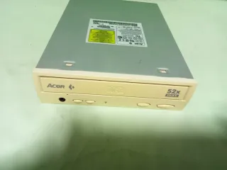 Unidad de CD-ROM de la marca Acer con velocidad de lectura de hasta 52x. - Diseño frontal en color beige. - Incluye botones de control y puerto para auriculares.