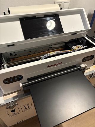 Impresora DTF Procolored solo tiene 3 meses de uso, sin marcas,como nueva ! • Incluye cables USB y de alimentación. • Dispone de panel de control. • Termostato electrónico integrado. Procolored F13 Panda L1800. Es una impresora de transferencia de película de alta calidad y fácil de usar. Ofrece calidad de impresión industrial a velocidades de producción impresionantes. Funciona para múltiples tipos de tela, como algodón, poliéster y sus mezclas. Puede utilizarse para personalizar camisetas y otras prendas. se vende con horno también incluido y muchos accesorios en su caja original . la vendo ya que no tengo tiempo por otro tra